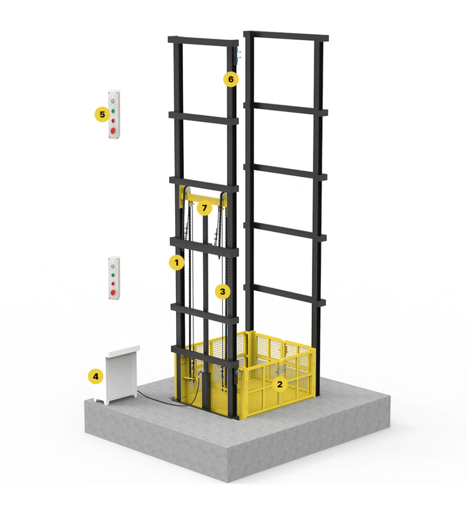 Heavy-duty goods lifts designed for safe and efficient material transportation in industrial spaces.