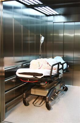 Spacious and hygienic lifts customized for hospital environments and patient transport.